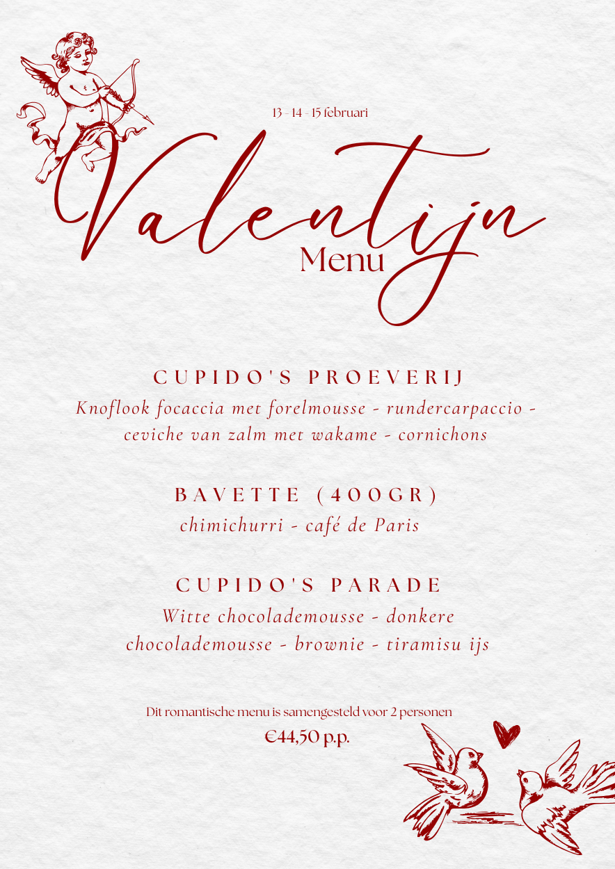 valentijn. Wij serveren een heerlijk romantisch driegangenmenu.